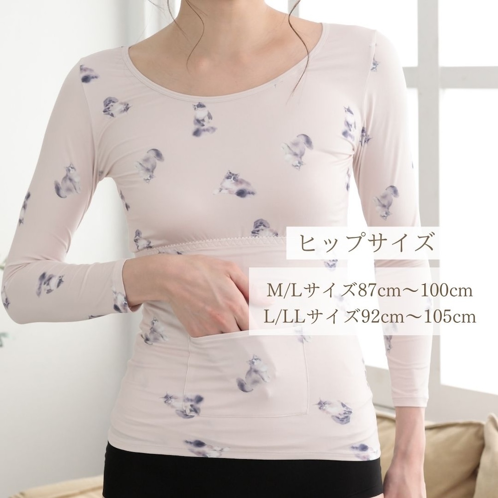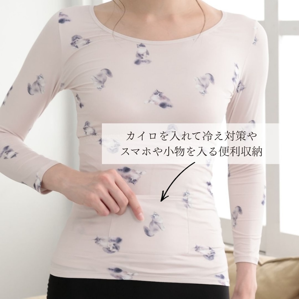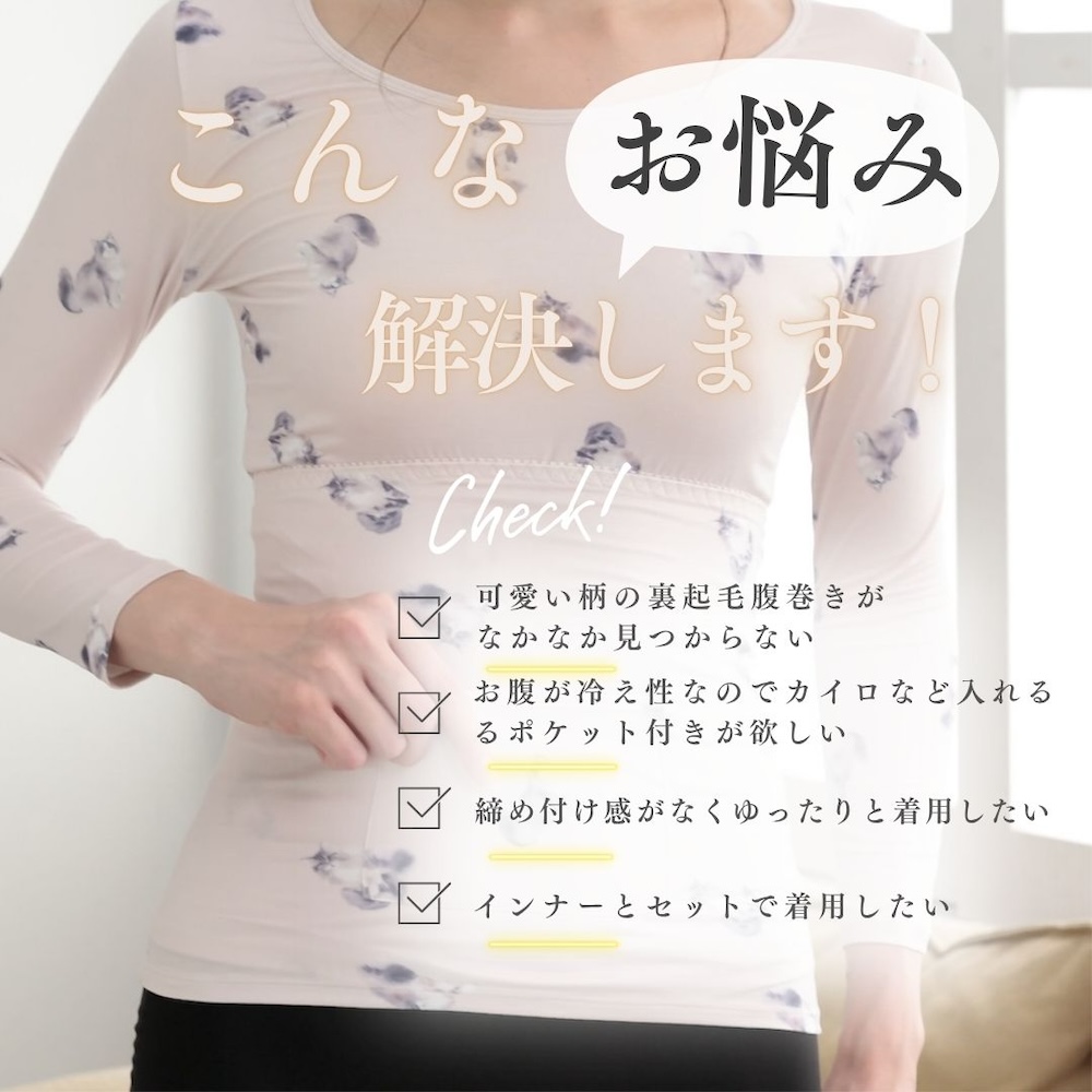 裏起毛 インナー レディース 腹巻き ポケット付き パンダ とり ねこ くま うさぎ あったか シルキーリッチ 大きいサイズ 厚手 カットソー 軽い 快適 気心地 軽量 フィット感 リラックス 伸縮性 インナー 防寒 防風 冬 秋 ラウンド ロンT 冷え対策 保温 毛布 防寒インナー