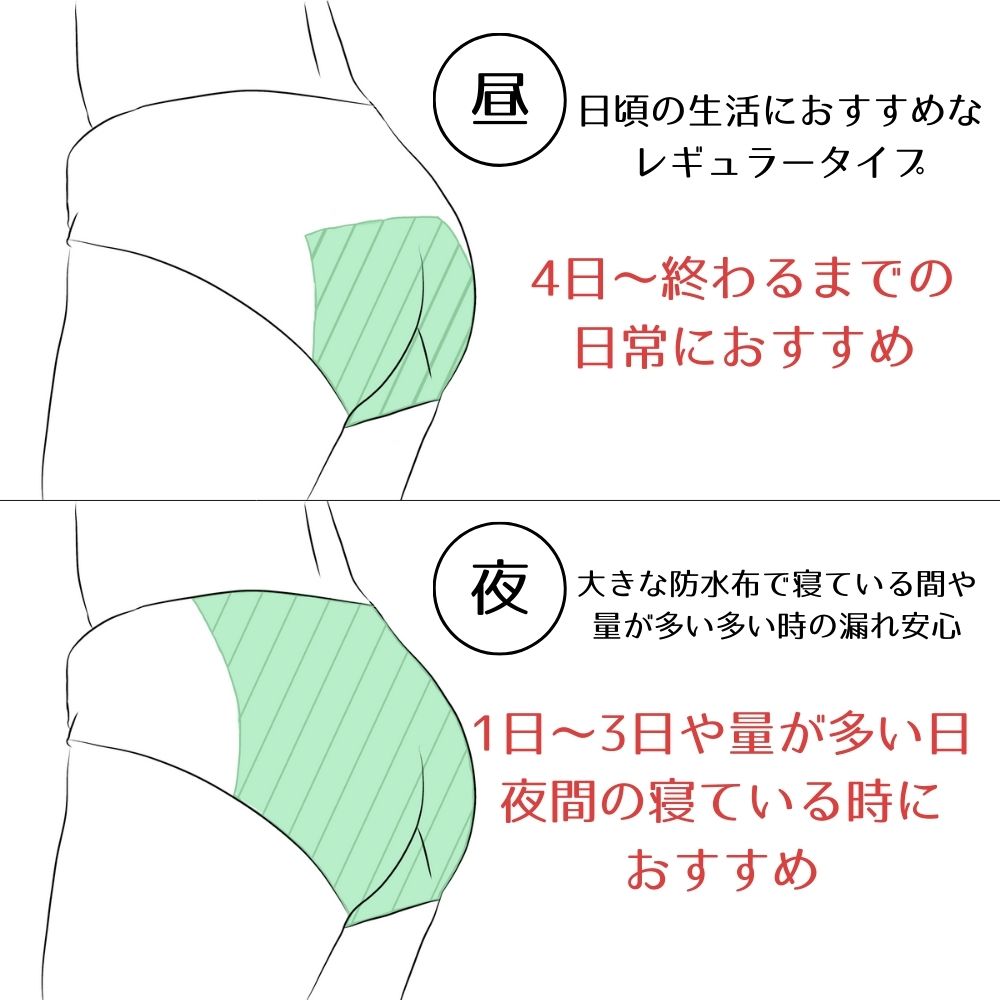 昼用と夜用の2タイプからお選びいただき柄も2パターンから選べるサニタリーショーツ
