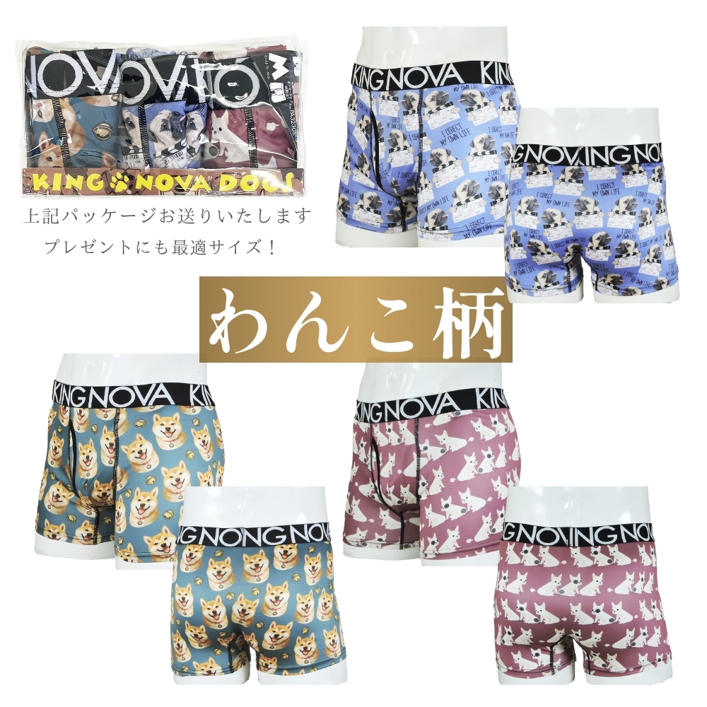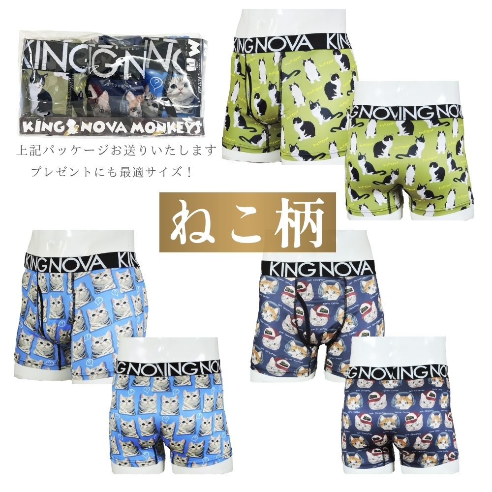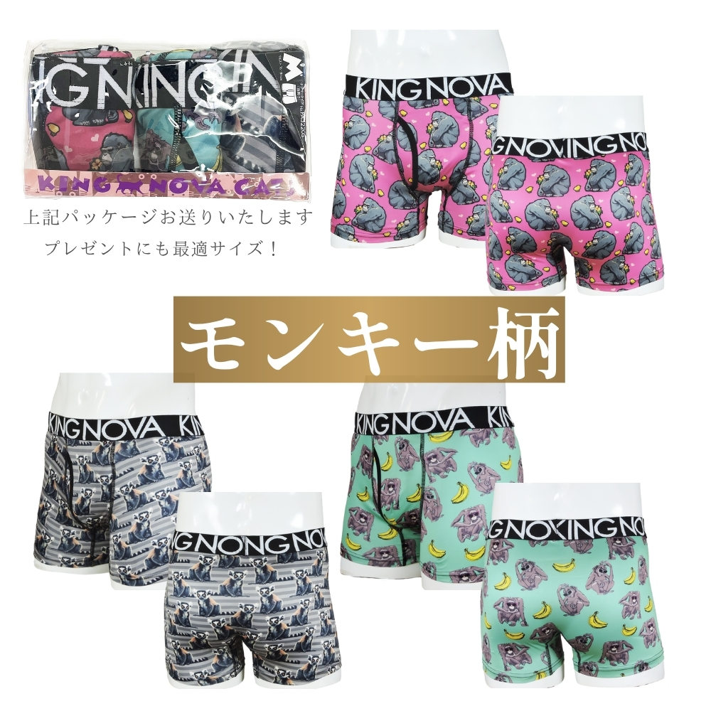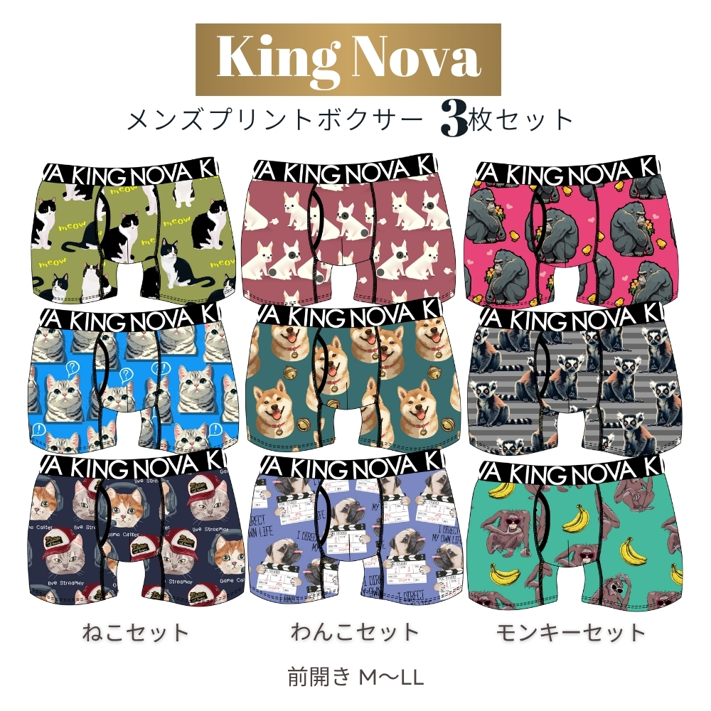 「KingNova」から動物柄3種(ねこ・わんこ・モンキー)の3枚セットボクサーパンツが登場