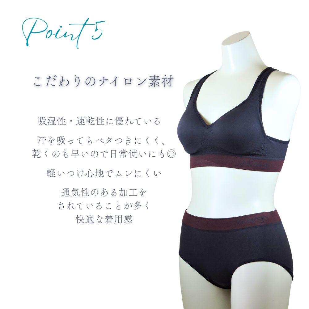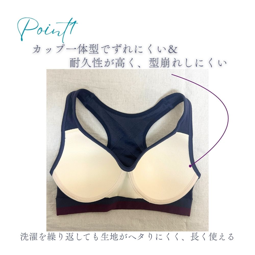 カップがずれにくくフィット感のある着心地でアクティブな動きにも安心です