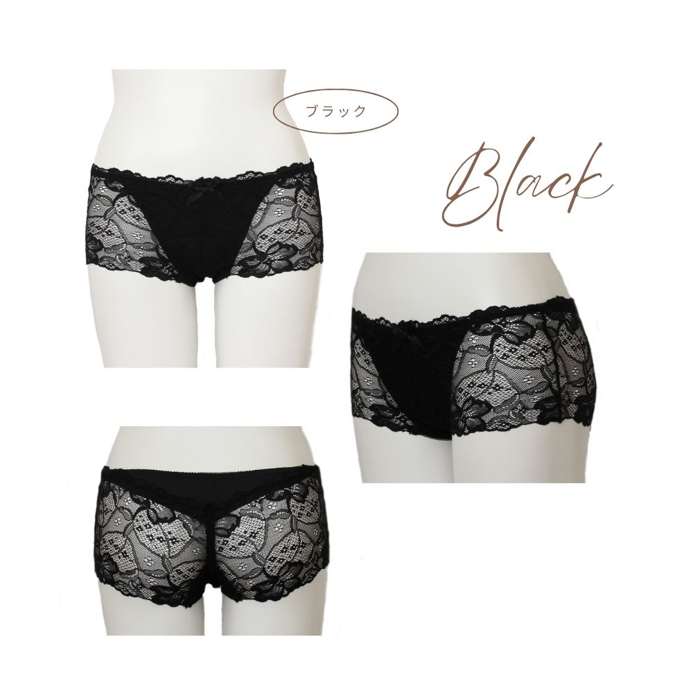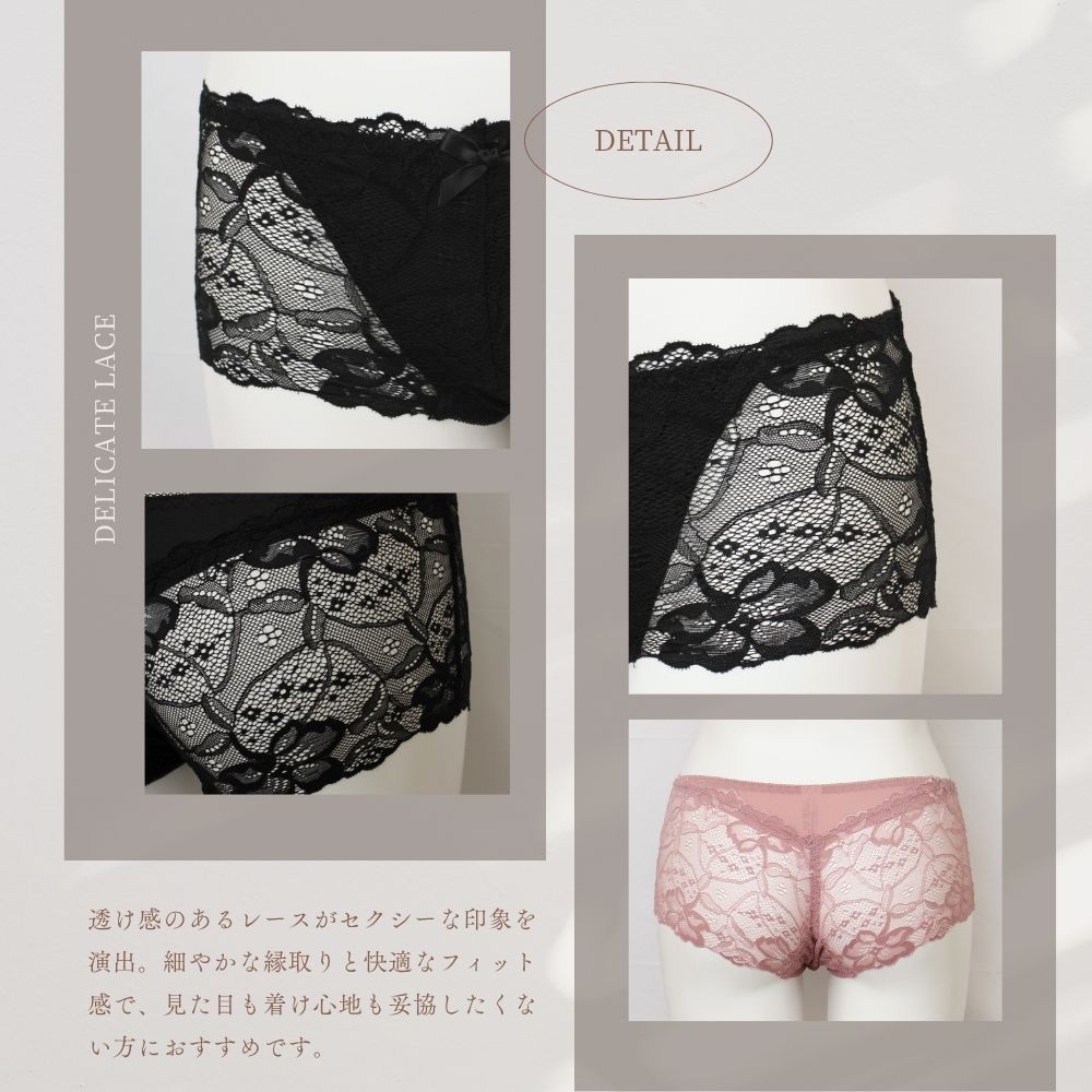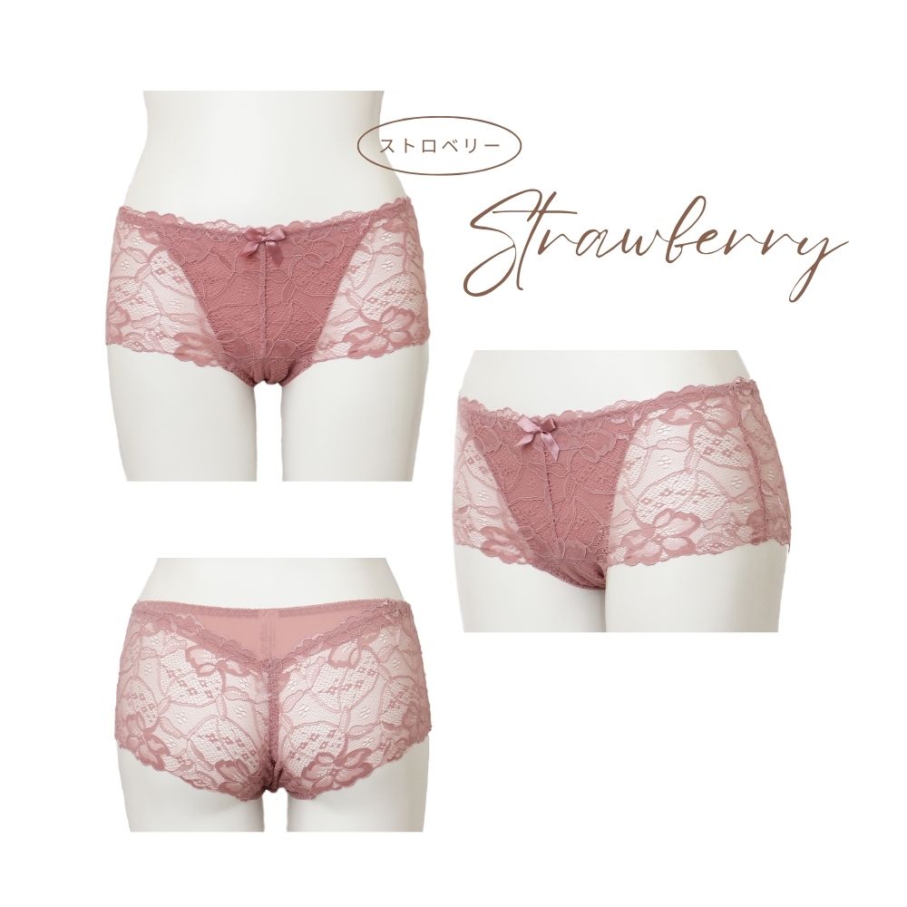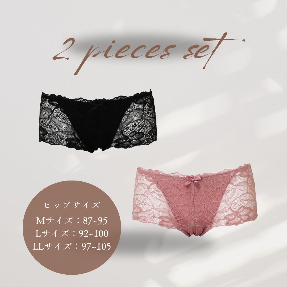 サニタリーショーツ2枚セットは、レースデザインが施されたブラックとストロベリーの2色展開で、女性らしさを引き立てます
