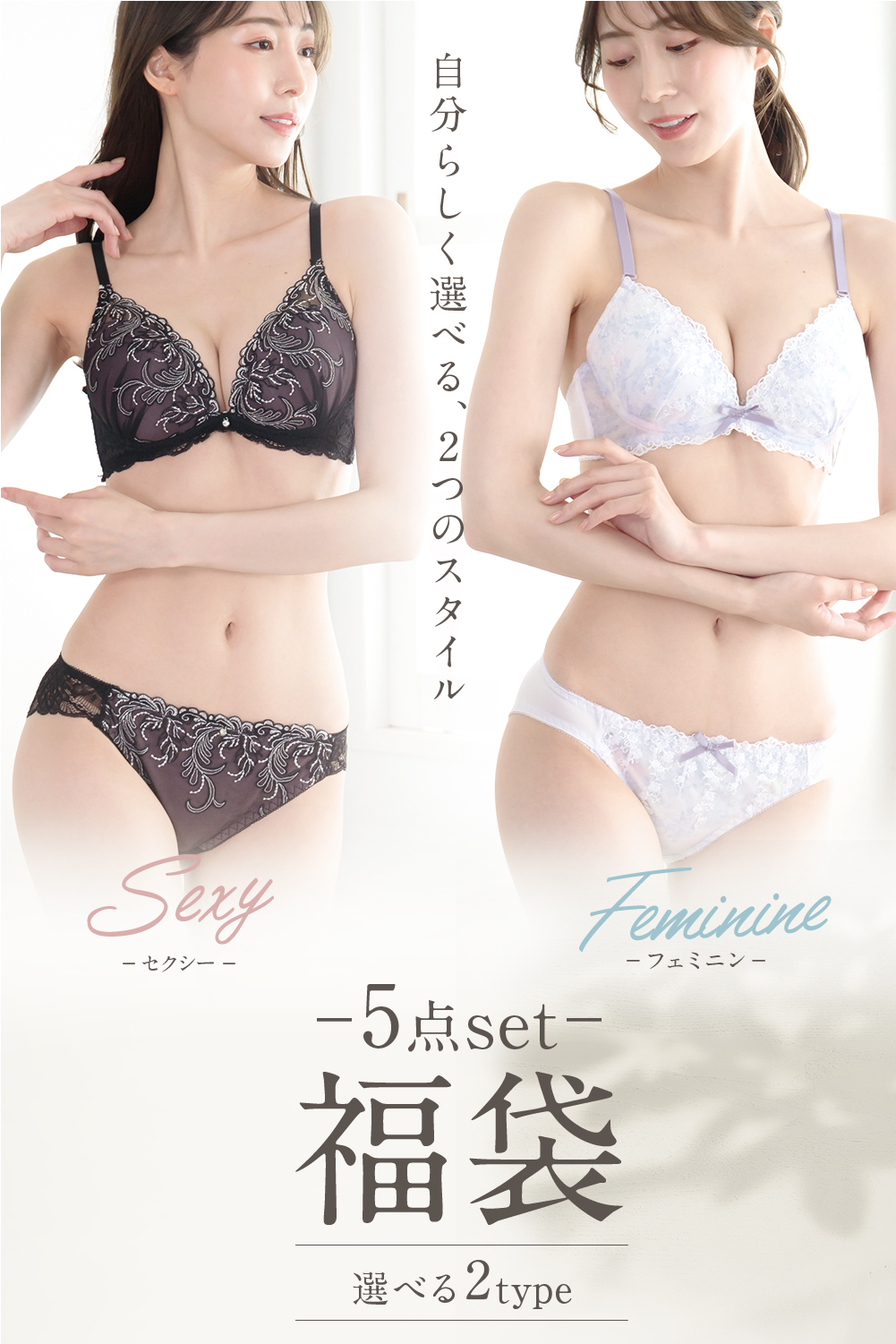 ブラセット3枚組は、フェミニン系とセクシー系の2タイプからデザインをお選びいただけます。