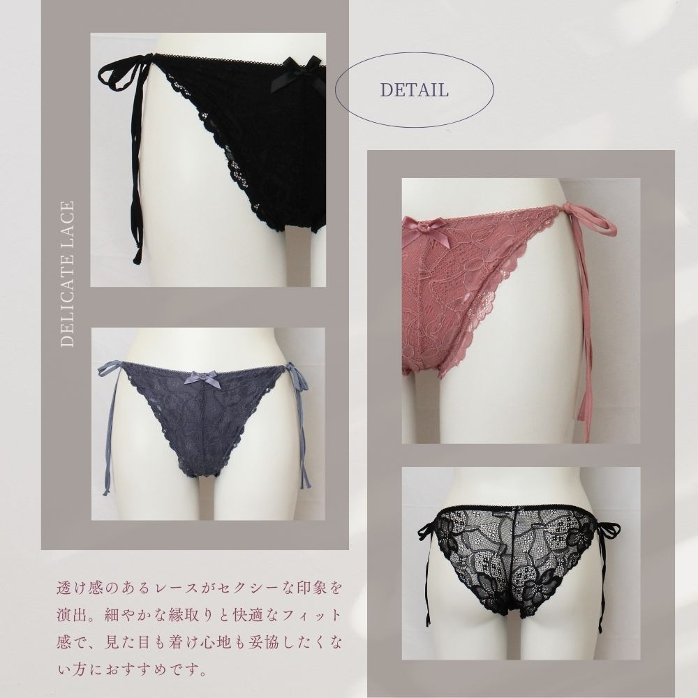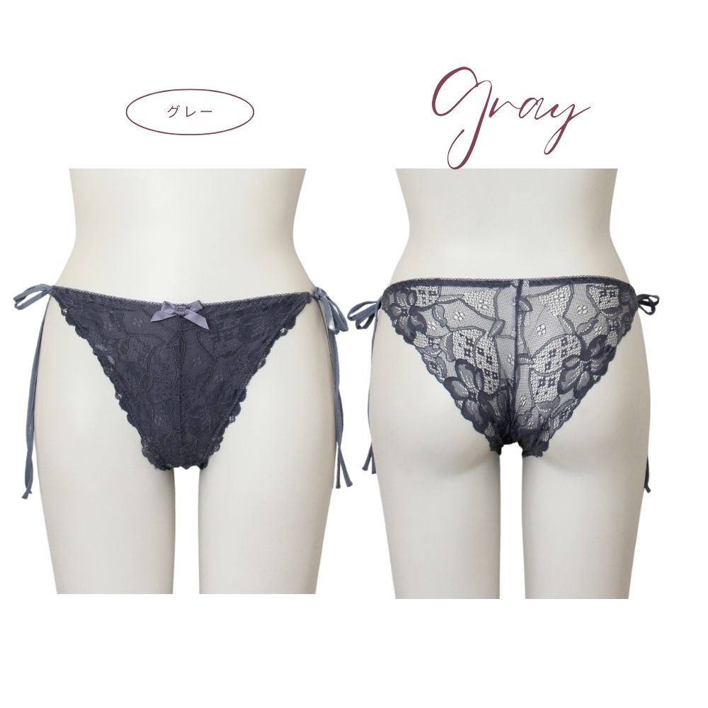 紐ショーツ レースタイプ ブラック ストベリー グレー 3枚組セット
